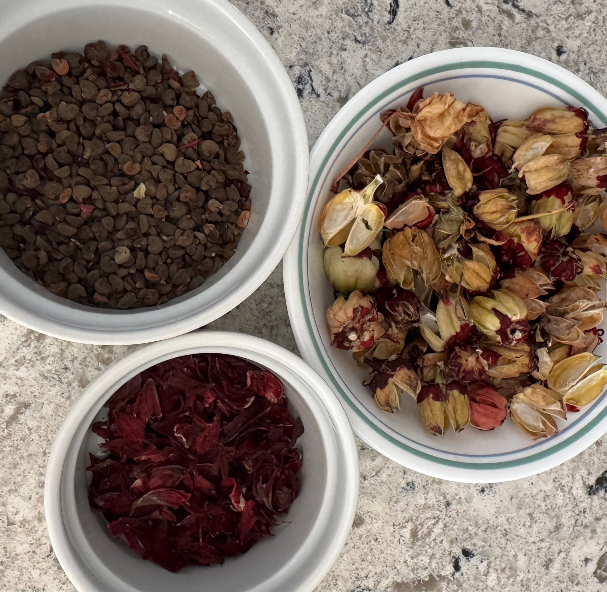 Featured above: hibiscus seeds, pods and dried petals for tea (prepared 12.11.24).